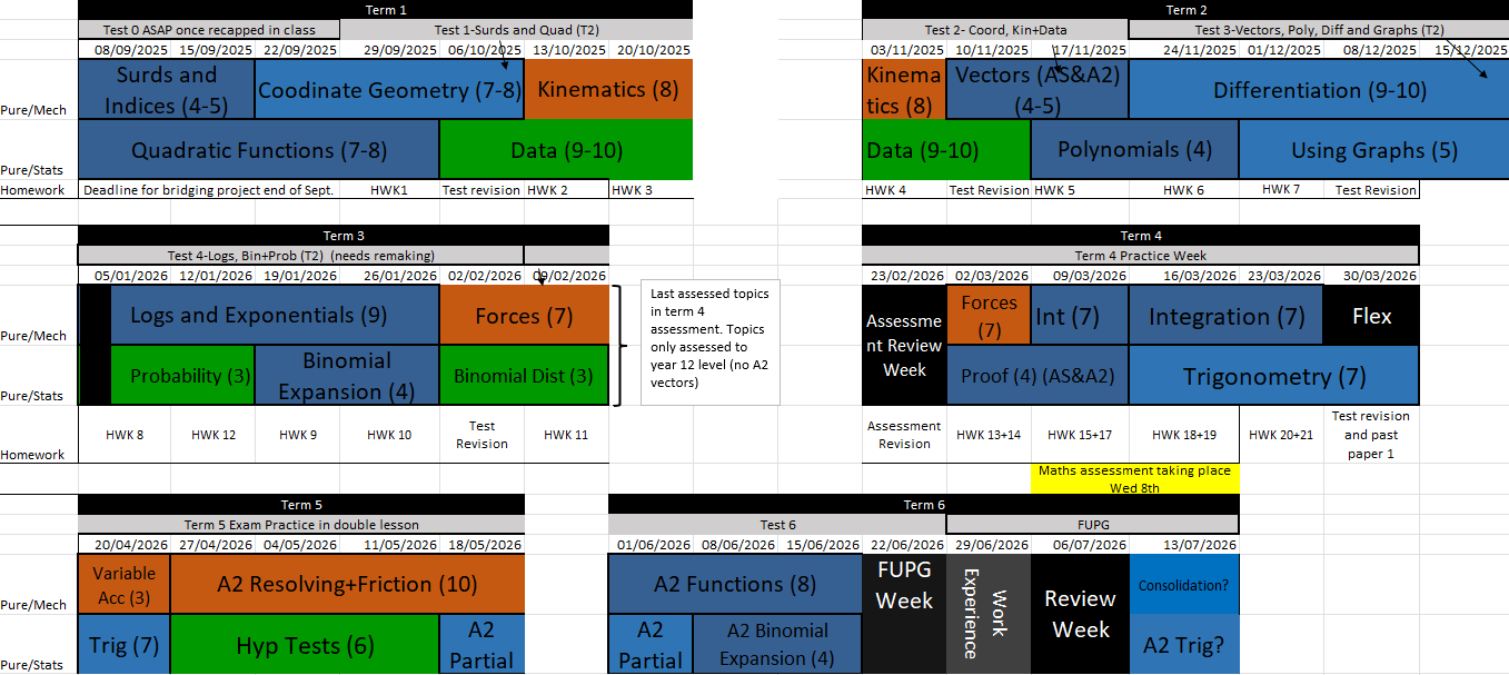 The images below are intended to give you a rough idea of the order of the course. They are most definitely, particularly with exam dates, subject to change!